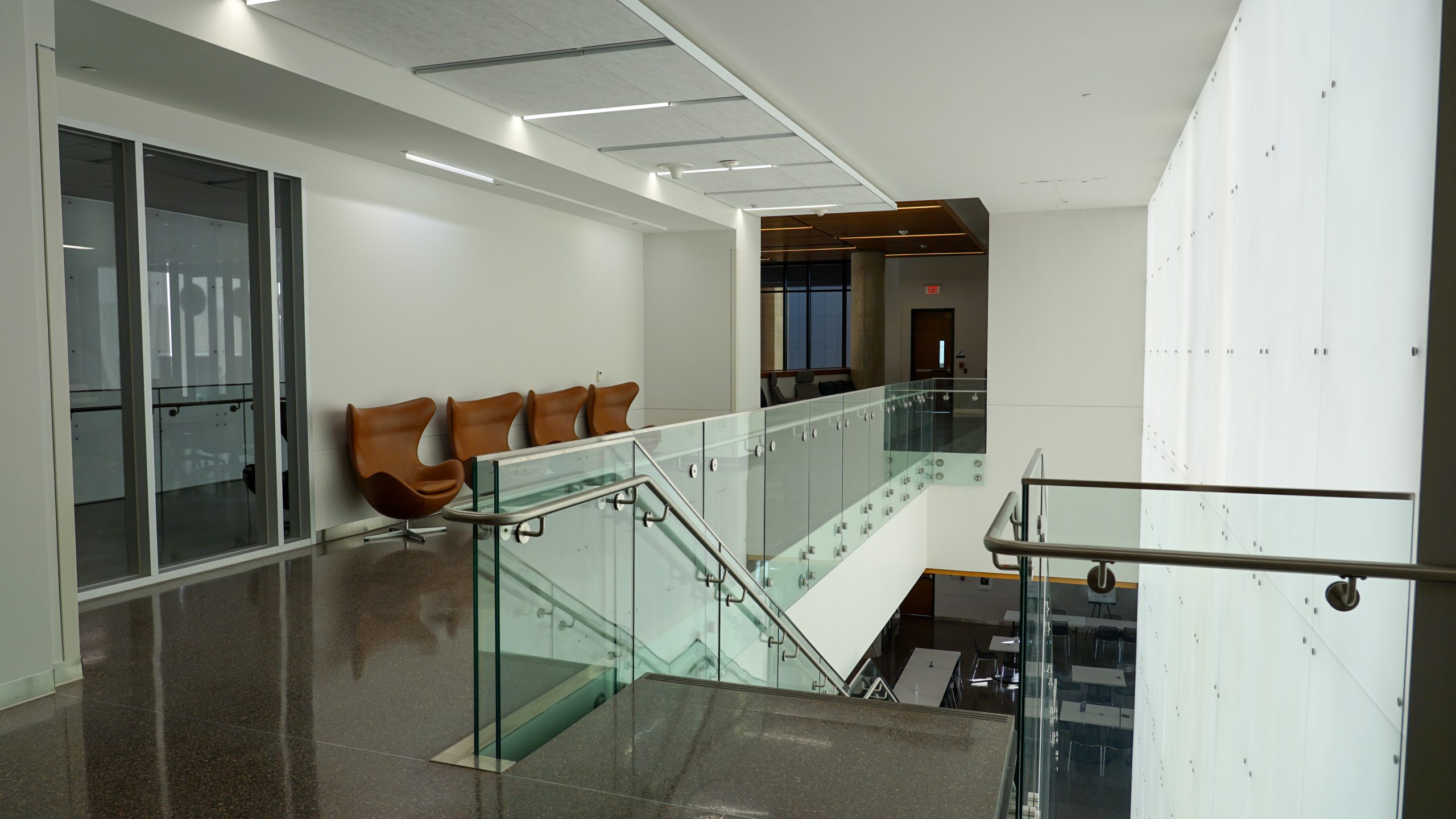 Opened in 2019, the Interdisciplinary Research and Education Building (IREB) at the University of North Texas Health Science Center (UNTHSC) is a 172,000-square-foot, LEED Gold–certified facility that brings together teaching, research, and public-facing campus spaces in a highly flexible environment. The building houses the College of Pharmacy, the North Texas Eye Research Institute, and the School of Health Professions, and includes open-concept laboratories, a small vivarium, simulation suites, active learning classrooms, faculty offices, dining services, and shared public spaces. As one of the first facilities on campus to incorporate active learning classrooms, IREB helped establish a new instructional model that has since become the campus standard.
